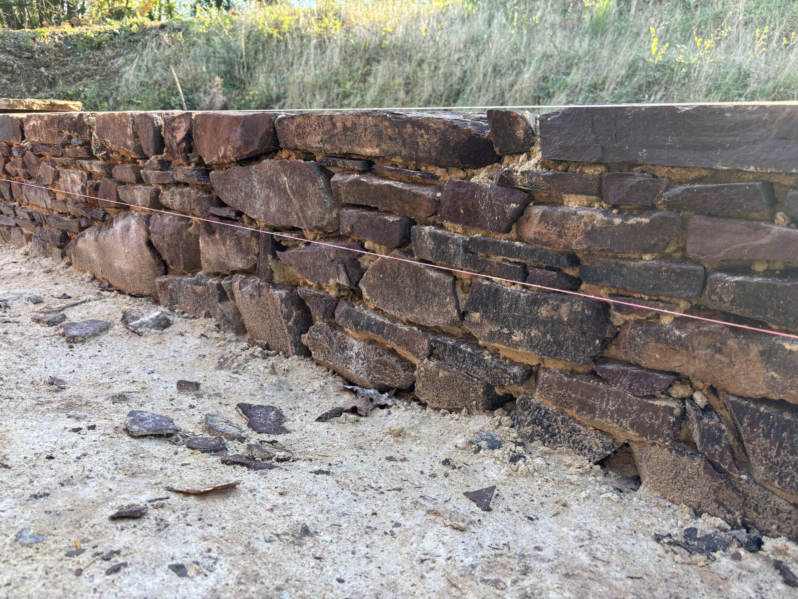 Celles qui sont récupérées lors d’une démolition sur place ne sont pas jetées : elles sont soigneusement triées, nettoyées et réutilisées pour construire le nouveau muret.